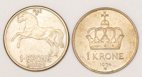 • Numismática, Noruega. 1 krone 1962 - 1974.