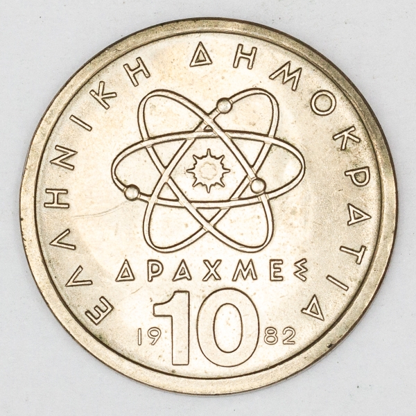 • Numismática, Grécia. Moeda de 10 dracmas, ano 1982, 26mm, escassa, KMH 119. FC.