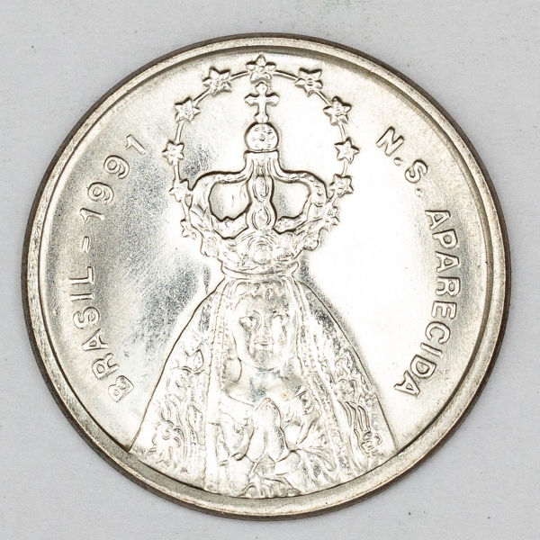 • Numismática, Brasil. Moeda comemorativa da visita do Papa João Paulo II ao Brasil em 1991, 27 mm.