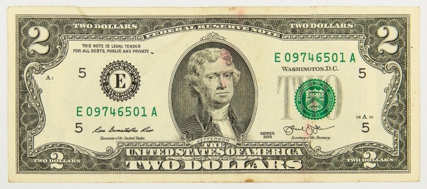 • Numismática, U.S.A. Cédula de 2 dólares Americano, 2013, Virgínia, escassa.