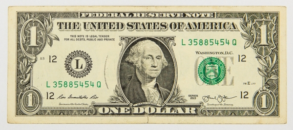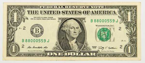 • Numismática, U.S.A. Cédula de 1 Dólar Americano, 2009, New York.