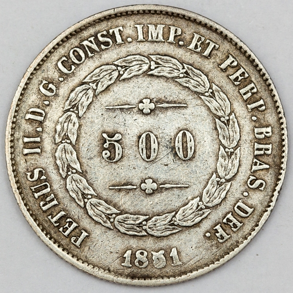 • Numismática, Brasil. Moeda de 500 RÉIS, ano 1851.