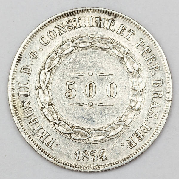 • Numismática, Brasil. Moeda de 500 RÉIS, ano 1854.