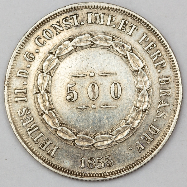 • Numismática, Brasil. Moeda de 500 RÉIS, ano 1855.