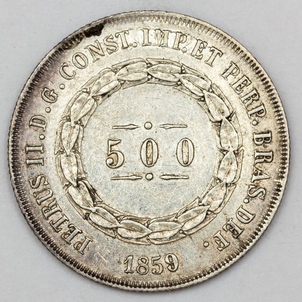 • Numismática, Brasil. Moeda de 500 RÉIS, ano 1859.