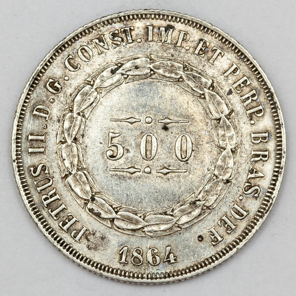 • Numismática, Brasil. Moeda de 500 RÉIS, ano 1864.
