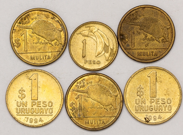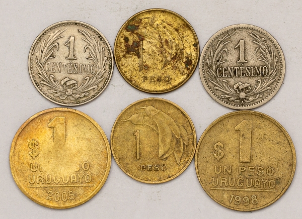 • Numismática, INTERNACIONAL. 6 Moedas Estrangeiras URUGUAY