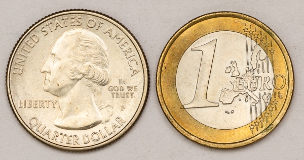 • Numismática, INTERNACIONAL. 2 Moedas Estrangeiras QUARTER e EURO