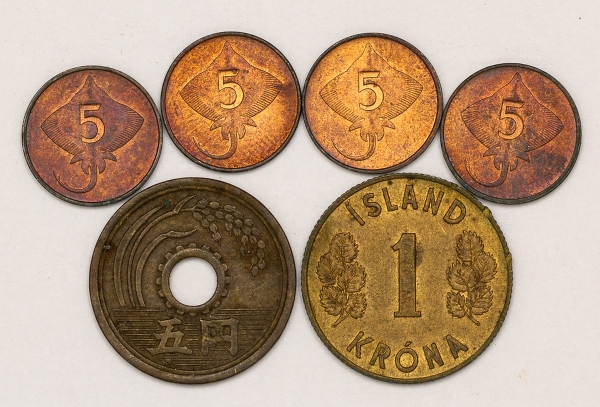 • Numismática, INTERNACIONAL. 6 Moedas Estrangeiras ICELAND