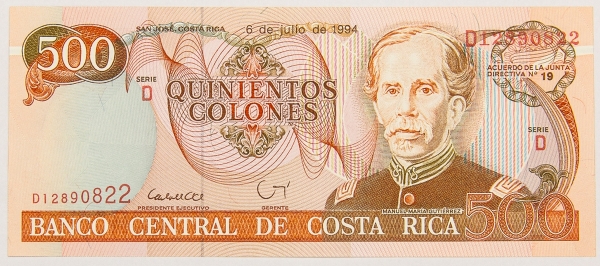 • Numismática, COSTA RICA. Uma Cédula P-269 500 Colones 1994 Flor de Estampa