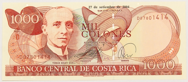 • Numismática, COSTA RICA. Uma Cédula P-270 1000 Colones 1994 Flor de Estampa
