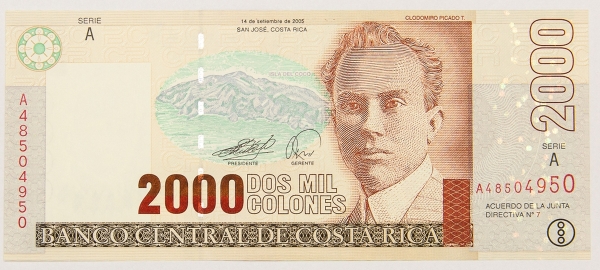 • Numismática, COSTA RICA. Uma Cédula P-271 2000 Colones 2005 Flor de Estampa