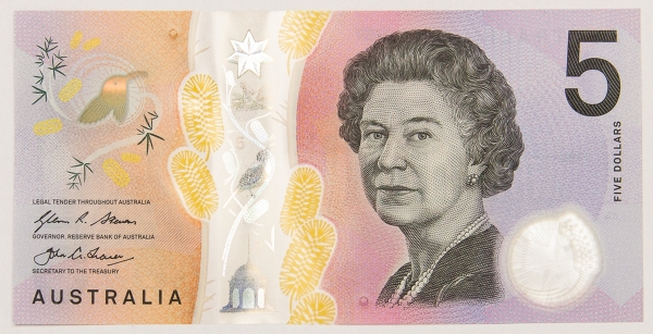 • Numismática, AUSTRALIA. Uma Cédula 5 Dollars Polímero Flor de Estampa