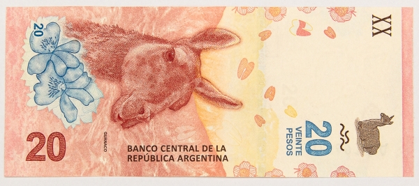 • Numismática, ARGENTINA. Uma Cédula 20 Pesos Flor de Estampa
