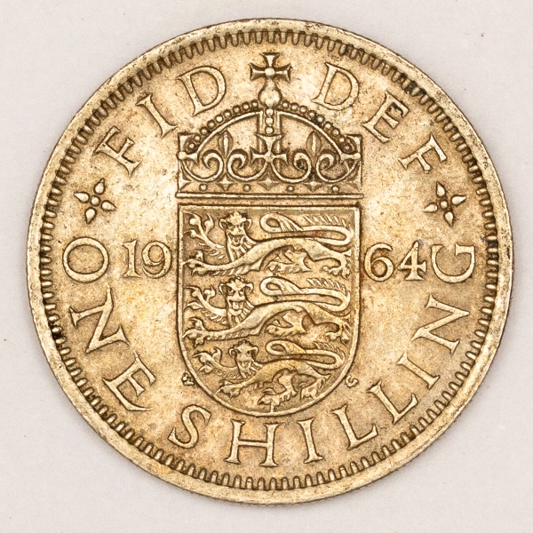 • Numismática, Reino Unido. 1 Shilling 1964.