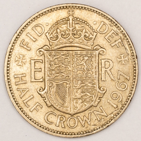 • Numismática, Reino Unido. 1/2 coroa 1967. Soberba. Flor de cunho.
