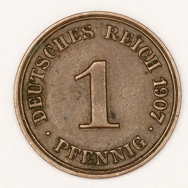• Numismática, Alemanha. 1 pfennig 1907J.