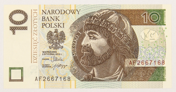 • Numismática, POLONIA. Uma Cédula P-183 10 Zlotych 2012 Flor de Estampa