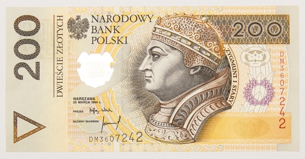 • Numismática, POLONIA. Uma Cédula P-189 200 Zlotych 1994 Flor de Estampa