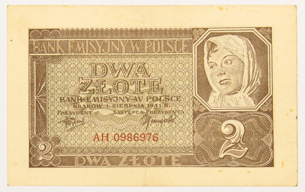• Numismática, POLONIA. Uma Cédula 2 Zlote 1941