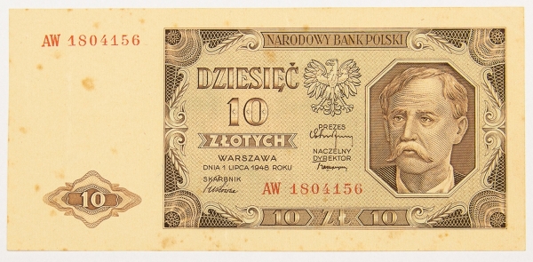 • Numismática, POLONIA. Uma Cédula 10 Zlotych 1948