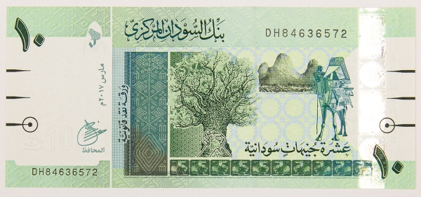 • Numismática, Sudão. 10 Sudanese Pounds 2017.