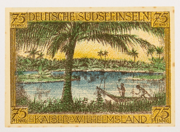 • Numismática, Alemanha. Deutsche Südseeinseln. 75 Pfennig. 1918. Peça já centenária.