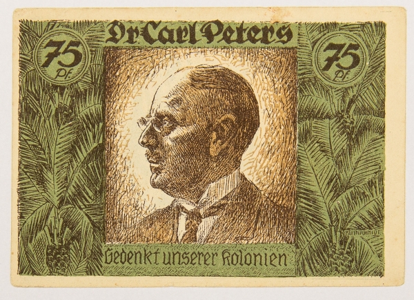 • Numismática, África Alemã. 1918. Peça já centenária. 75 Pfennig. África Colonial.