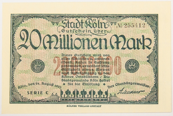 • Numismática, Alemanha. Cédula do pós-Guerra e/ou período inflacionário. Fez parte de importante coleção europeia. Peça não tropicalizada. Aconselhamos análise apurada. Oportunidade. Magnífica.