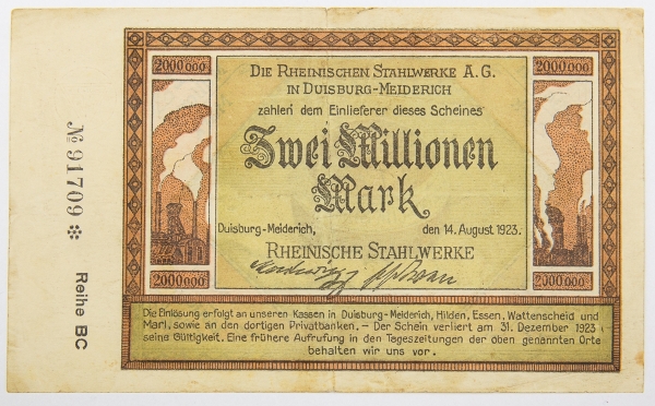 • Numismática, Alemanha. Cédula do pós-Guerra e/ou período inflacionário. Fez parte de importante coleção europeia. Peça não tropicalizada. Aconselhamos análise apurada. Oportunidade.