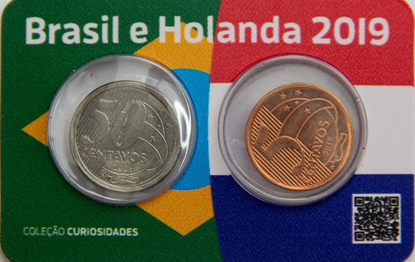 • Numismática, Brasil. 5 e 50 centavos. Letra A. Produzidas na Holanda. 2019.