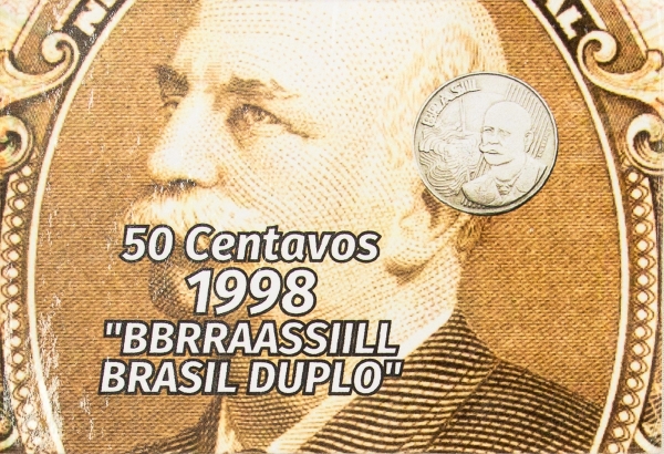 • Numismática, Brasil. 50 centavos 1998. Brasil Duplo. Linda Variante.