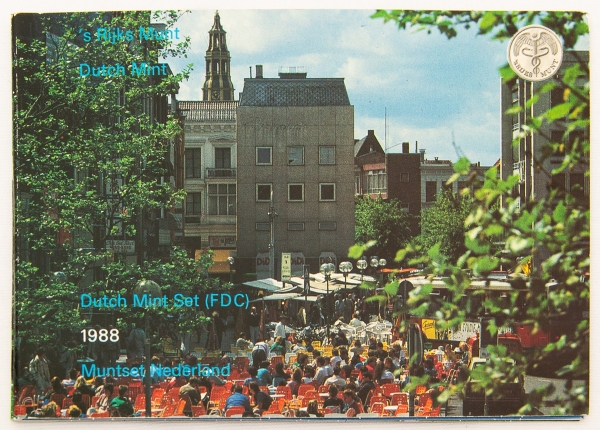 • Numismática, Holanda. Cartela Flor de Cunho com 6 moedas + um token. Ano de 1988.