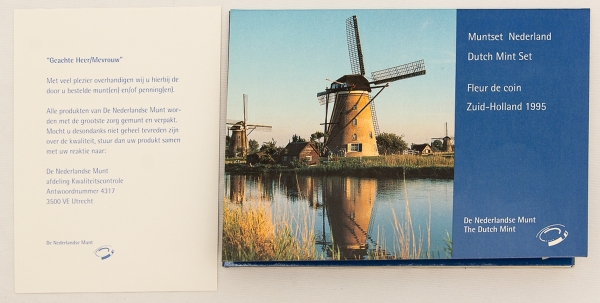 • Numismática, Holanda. Cartela Flor de Cunho com 6 moedas + um token. Ano de 1995.