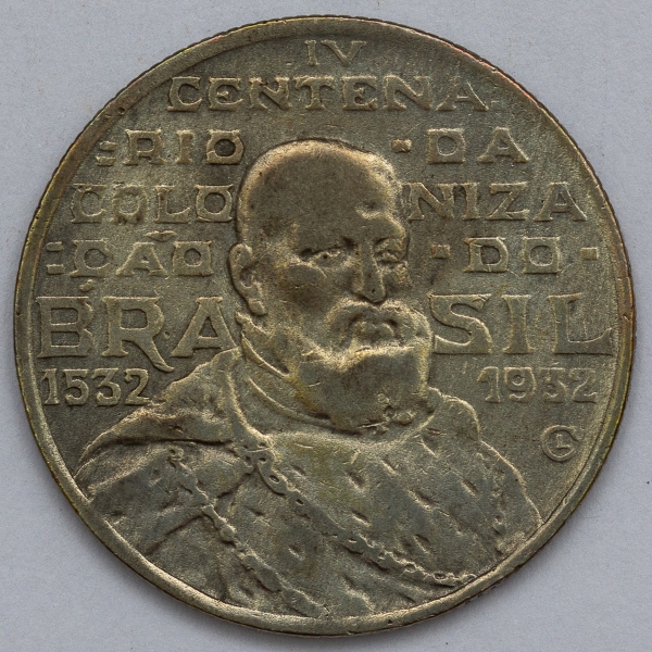 • Numismática, Brasil. 2000 Réis 1932. IV Centenário da Colonização. Prata.