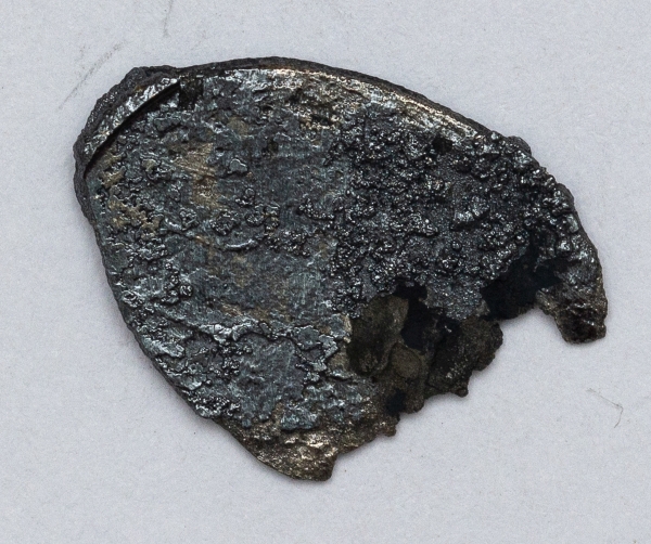 • Numismática, Rússia em Prata. Equivalente a 1/2 kopek. Século XV. Novogorod. Reinado de Ivã O Terrível. Peça resgatada de naufrágio.