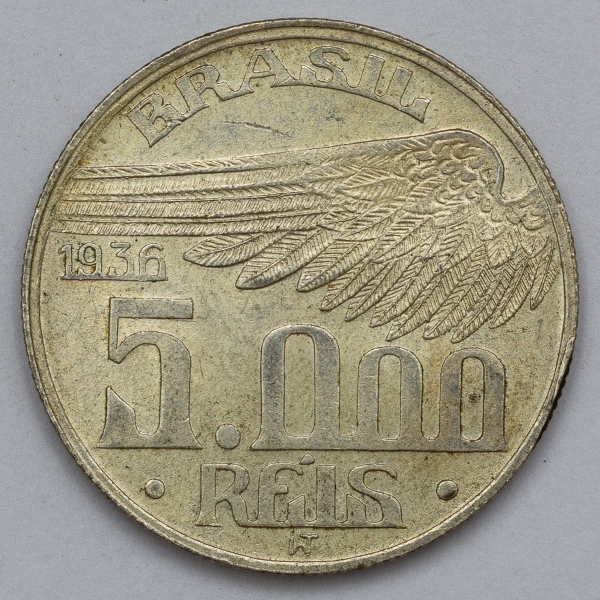 • Numismática, Brasil. 5000 Réis 1936. Prata. Perfeita.