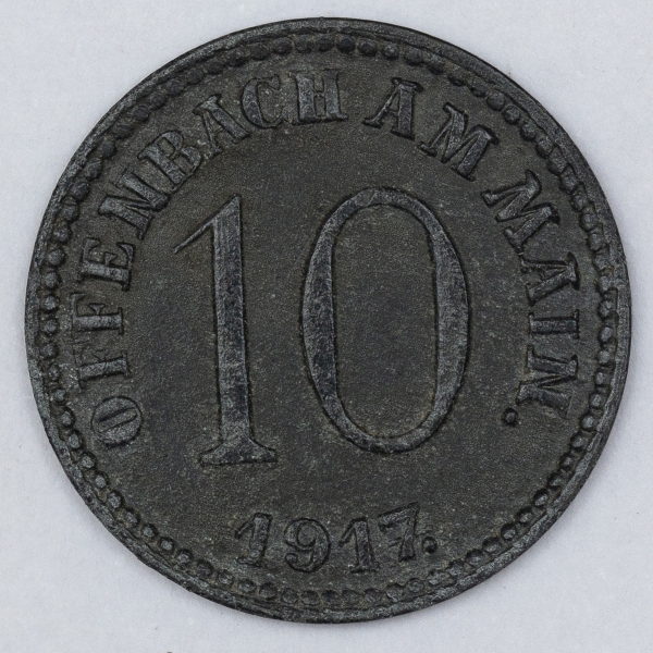 • Numismática. Magnífica peça. Proveniente de importante coleção adquirida na Alemanha. Notgeld. 10 Pfennig. 1917 Offenbach.
