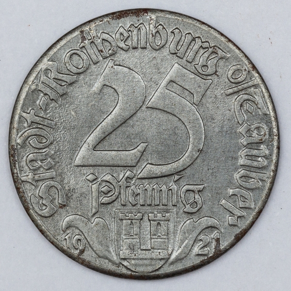 • Numismática. Magnífica peça. Proveniente de importante coleção adquirida na Alemanha. Notgeld. 25 Pfennig 1921. Rothemburg.