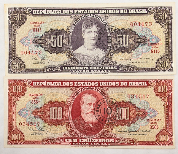 • Numismática, Brasil. Lote com 3 Cédulas 5 Cruzeiros Seriadas. Flor de Estampa.