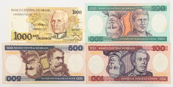 • Numismática, Brasil. 100-200-500-1000 Cruzeiros. Impecáveis.