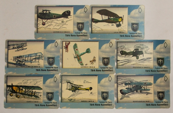 • Telecartofilia. Turquia. 8 peças. Aviões.