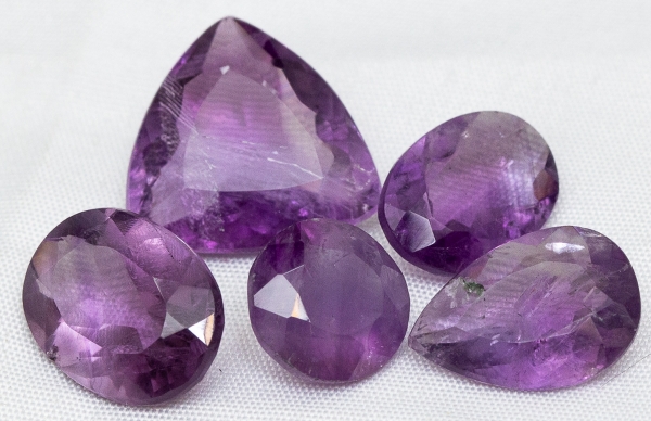 • Ametistas. 5 peças. 21 ct no total. Lapidações variadas.