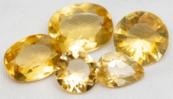 • Citrino. 5 lindas peças. 15,1 ct. Lapidações variadas.