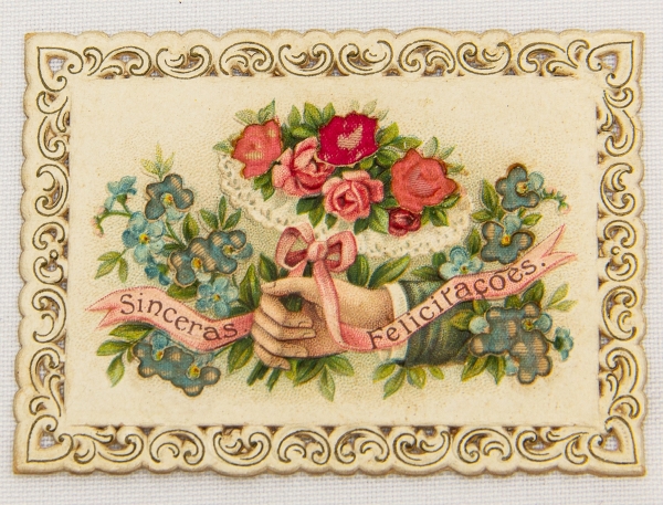 • Colecionismo - Antigo Cartão ofertado a um dos nubentes  - com os dizeres ` Vamo-nos esposar ` - Motivos Florais e a aliança de casamento - Todo em relevo - 7 x 5 cm