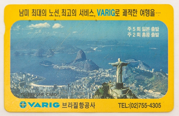 • Telecartofilia. Koreia para o Brasil. Raríssimo. Alta cotação. Varig - RJ.