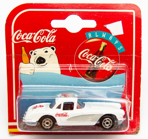 • Colecionismo - Miniatura Majorete - Chevrolet  Corvete 68 -Branco - Decoração da Coca Cola Company