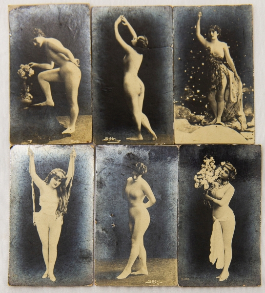 • Colecionismo - 6 Antigas figurinhas de nude - Aprox anos 10 /20 - Origem Desconhecida - Apenas com a marca SHE em duas delas