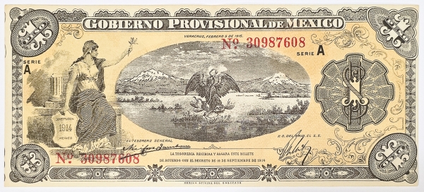 • Numismática, México / Veracruz. Cédula de 1 Peso 1914 P-S1101 SOB/FE
