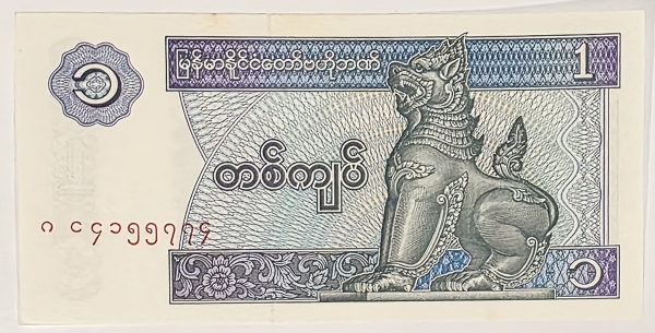 • Numismática, Myanmar. Cédula de Kyat 1996 P-69(2) FE